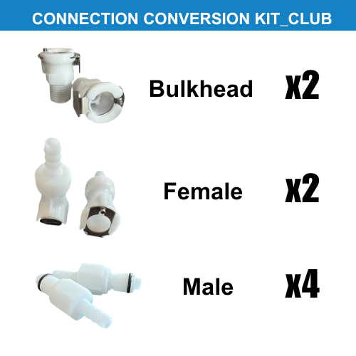 Replacement connections for COOLSHIRT club systems manufactured prior to 2024. Replaces 2 Bulkheads, 4 Hose connectors (2- Female, 2-Male) and 2 Male garment connectors. Converting from retired COOLSHIRT connectors to upgraded CPC American made connectors.